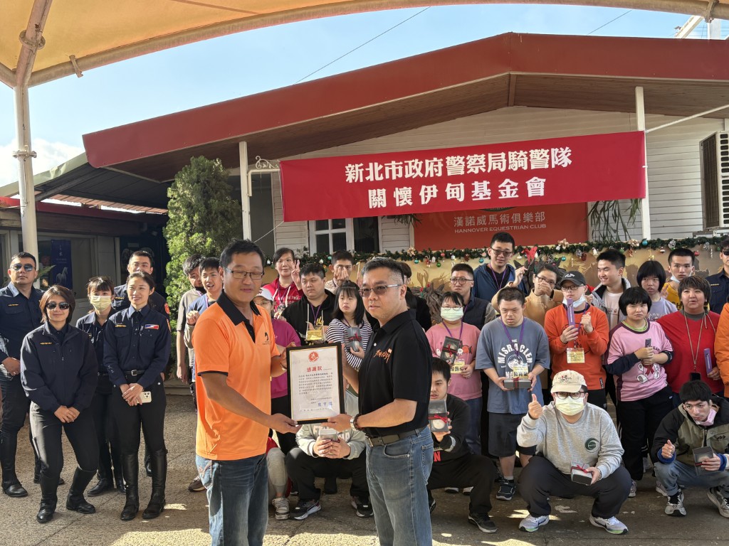 伊甸基金會頒發感謝狀予新北市政府警察局騎警隊。(新北市警局提供)