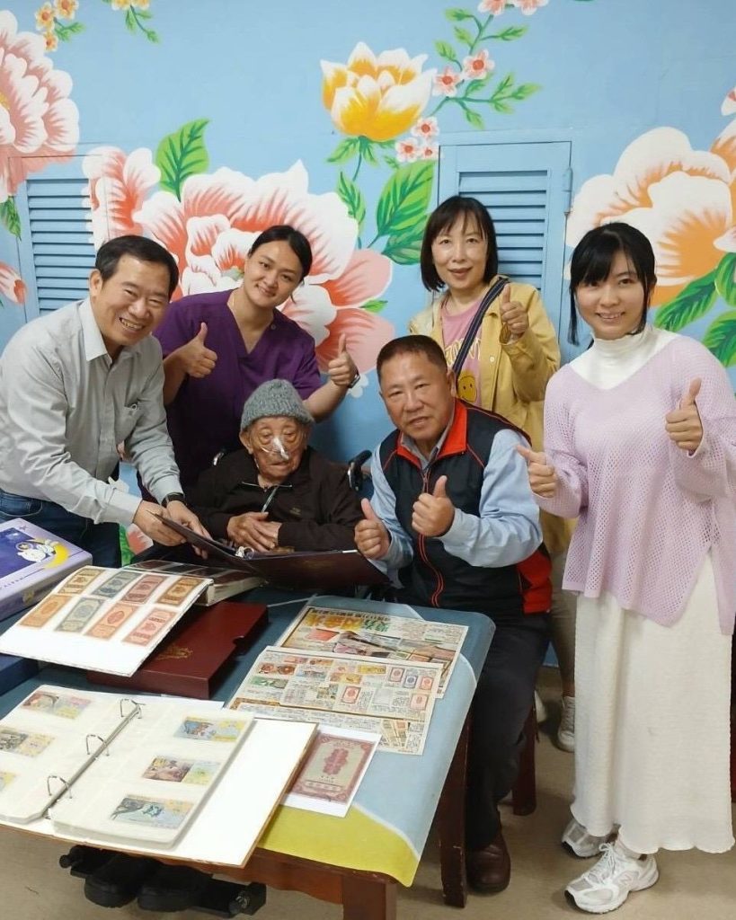 花蓮榮家主任游文勇知道雷伯伯自早年有購買樂透彩習慣後,特地將自己收藏珍貴的愛國獎券、糧票、舊台幣等歷史文物與雷年坤伯伯及其他榮民伯伯們一起回憶過去的舊時光。
