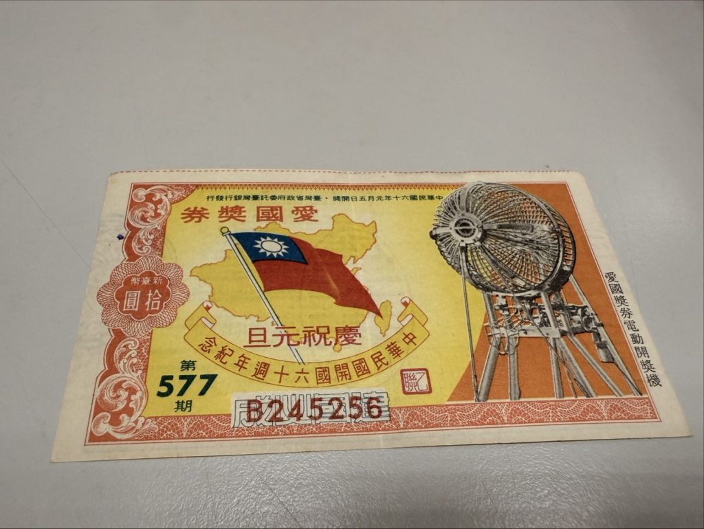 民國六十年,漲價後的紀念券第五七七期,都是特別珍貴稀少的票券。(花蓮榮家提供)