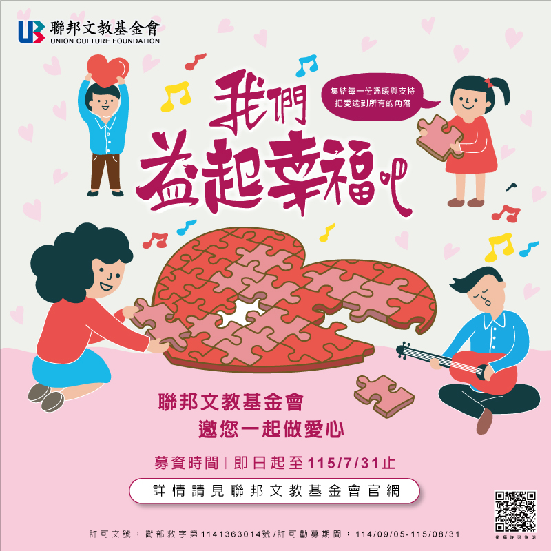 更多公益專案與捐款方式,請至「我們益起幸福吧」官網了解詳情,邀請企業與民眾一同以行動力挺,加入公益愛心行列,與聯邦文教基金會「益起幸福」、讓愛永續傳遞。https://www.ubot.org.tw/uborgdonate/index.aspx