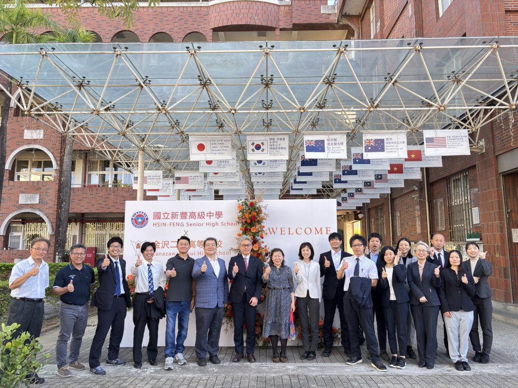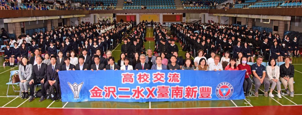 金澤二水高校與新豐高中歷年來的互訪交流雖因疫情期間中斷數年,改為線上交流,但在疫情結束後的二0二四年即又恢復兩校互訪的情誼。今年十二月中旬,金澤二水高校由副校長板坂純理帶領三百八十八位師生來台畢旅,十一日造訪新豐高中校園。