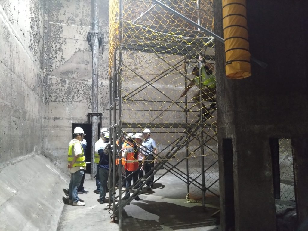 迪化廠長黃邰聰說明,由於汙水處理廠需二十四小時不中斷運作,施工採分池方式進行。六座生物處理池每池長六十三點三公尺、寬二十七公尺、水深十公尺,施工時先透過既有排水閘門導流,將汙泥迴流至前段單元,再進行池底人工清理,最後完成散氣板放樣與安裝。此次將安裝共三千一百六十八片高效率散氣板,確保施工期間廠內營運維持正常。