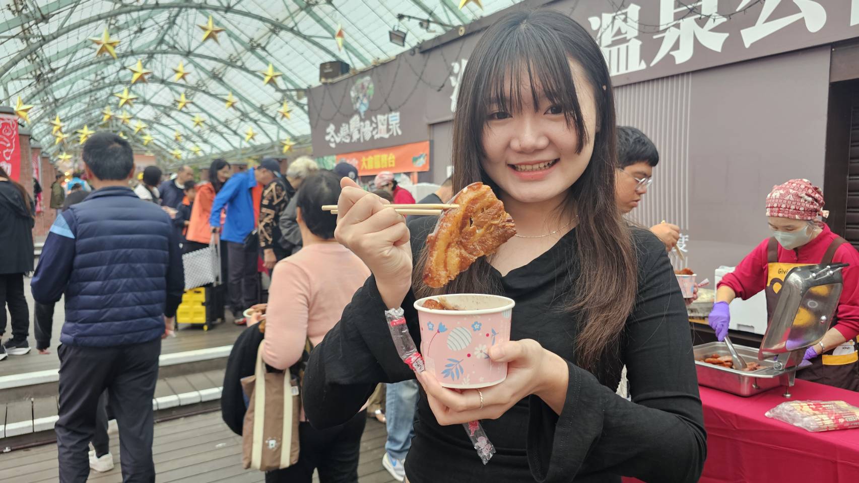 為了讓大家能夠在疫情過後放心品嚐台灣國產豬,宜蘭縣政府隨即提出多項補助與配套措施外,在農業部、中央畜產會及中華民國養豬協會指導下,由縣府與養豬協會共同辦理臺灣豬安心吃活動,盼以實際行動讓消費者安心選購國產豬肉。免費豬肉飯品嚐活動,十三日中午十一點一到,現場就排滿了人潮,許多民眾聞到香噴噴的豬腳和手塊控肉都忍不住流口水,一拿到就在現場大口扒飯,天冷在泡完湯後又能大快朵頤,民眾表示這一塊豐富的豬肉飯至少要一佰到一佰五十塊,能免費吃到真的是假日裡的小確幸。