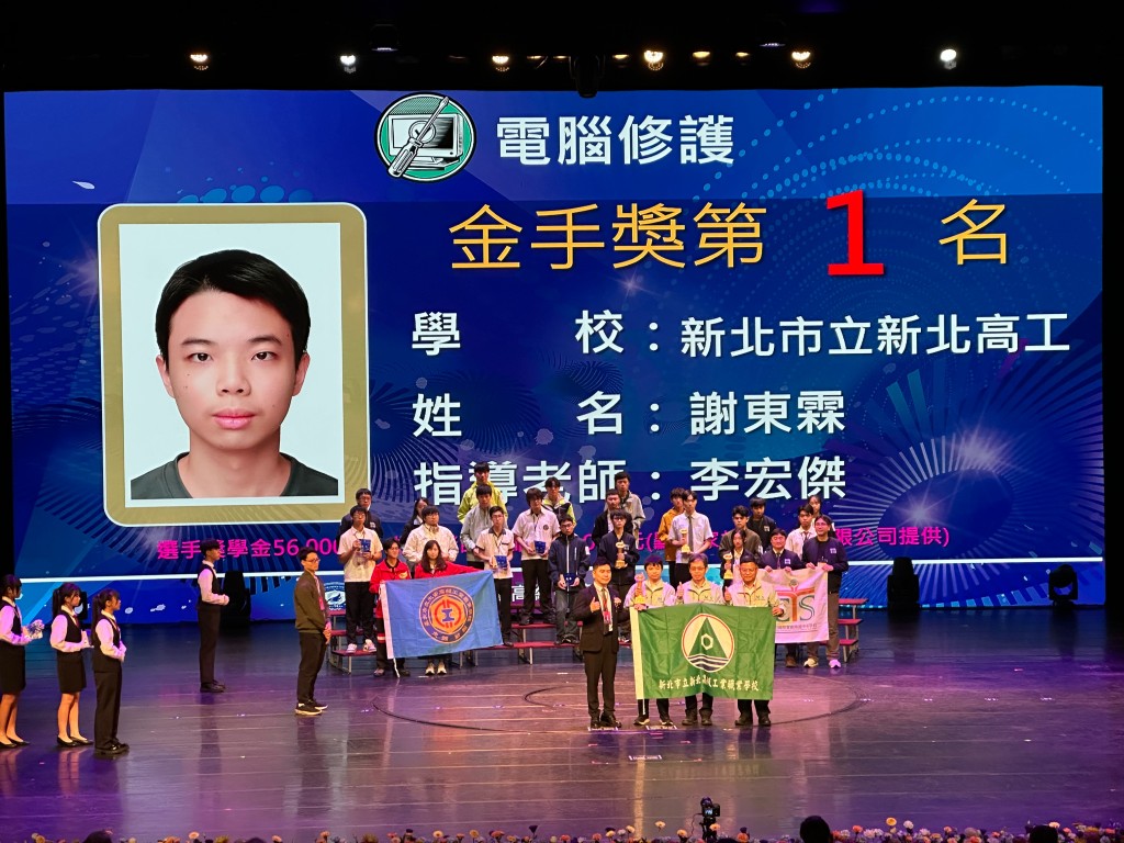 多所學校的亮眼表現也寫下新紀錄。瑞芳高工一舉奪下11座金手,創下校史91年以來最佳紀錄;榮獲測量職種金手第一名的孫煜翔、李威瑱分享,他們歷經一年超過百次訓練,不論酷暑或風雨都堅持到場,感謝趙雅靜與翁明郎老師,不僅傳授專業,在挫折時給予關鍵支持,讓他們一次次突破極限。鶯歌工商機器人金手雙金選手李毓祐、徐睿辰則表示,技術開發、程式調校到機構修正都充滿挑戰,能站上最高殿堂,是靠著指導老師與隊友的支持一路挺過難關。電腦修護職種新北高工更締造三連霸,謝東霖選手分享,從找錯點、拆解、焊接到重組,每一步都是學習,感謝新北培訓團隊的專業陪伴。