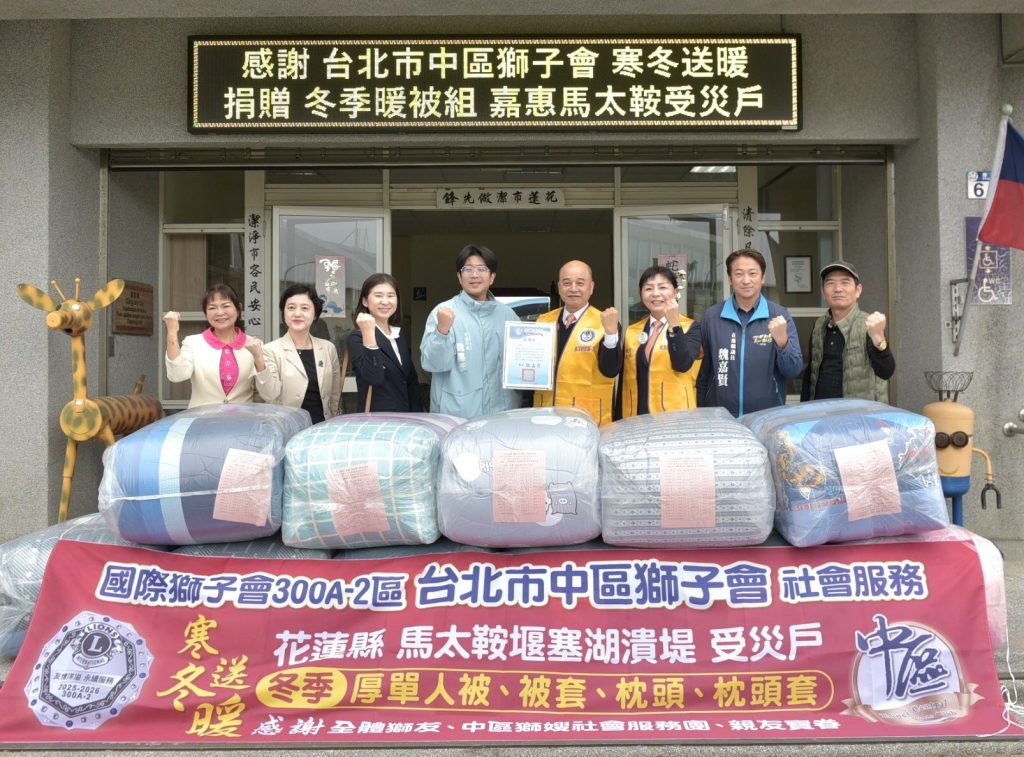 國際獅子會300A-2區台北市中區獅子會關懷花蓮災後重建,發起寒冬送暖募捐行動,共募得冬季寢具共五百四十份,透過花蓮市公所轉贈馬太鞍因洪災受創的弱勢家庭,盼在寒流來臨時補上保暖缺口,陪伴受災鄉親溫暖過冬。