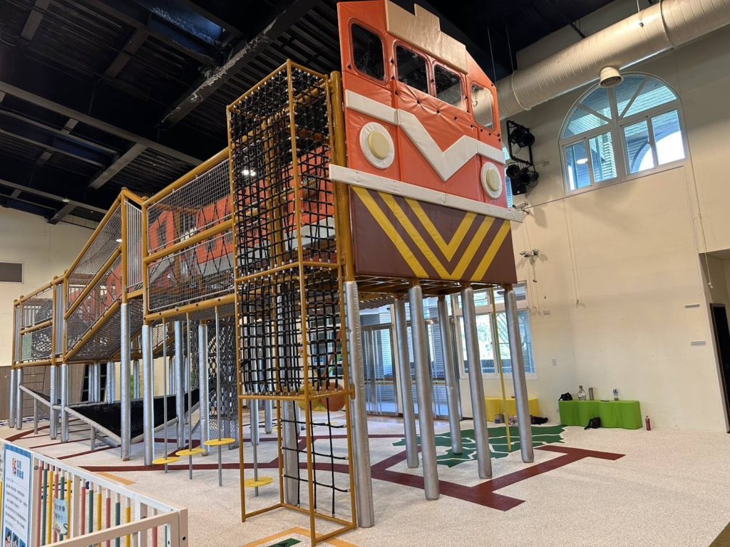 吳雨潔說,火車車廂遊玩動線則模擬孩童穿越車廂,內部設有多種不同的平衡挑戰設施,並在頭尾兩端提供路線選擇,增加遊玩變化與趣味性。