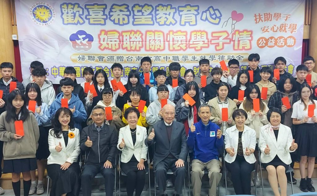 中華民國婦聯會與財團法人中華民國婦聯社會福利基金會十四日上午假新營高中,頒贈台南市廿五所學校的卅九名高中職學生就學補助金,每人一萬元。頒贈儀式係由婦聯會台南市分會與歡喜希望社會福利基金會攜手辦理,歡喜希望社會福利基金會則捐款五萬元給新營高中「教育儲蓄專戶」,共同為扶助弱勢學生安心讀書略盡綿薄。