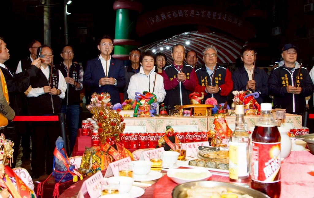 台中市沙鹿區興安福鎮宮創建於民國三十年,因緊臨沙鹿、梧棲往來主要幹道旁,車流頻繁影響交通安全且廟地不足,廟方於一0七年決議蓋新廟,新廟於去年十二月落成。十三日晚舉行重建週年圓滿宴,市長盧秀燕前往參拜祈福,並致贈「福德萬民」匾額,感謝廟方長年對地方的貢獻,也祈求福德正神庇佑市政昌隆、市民平安健康。