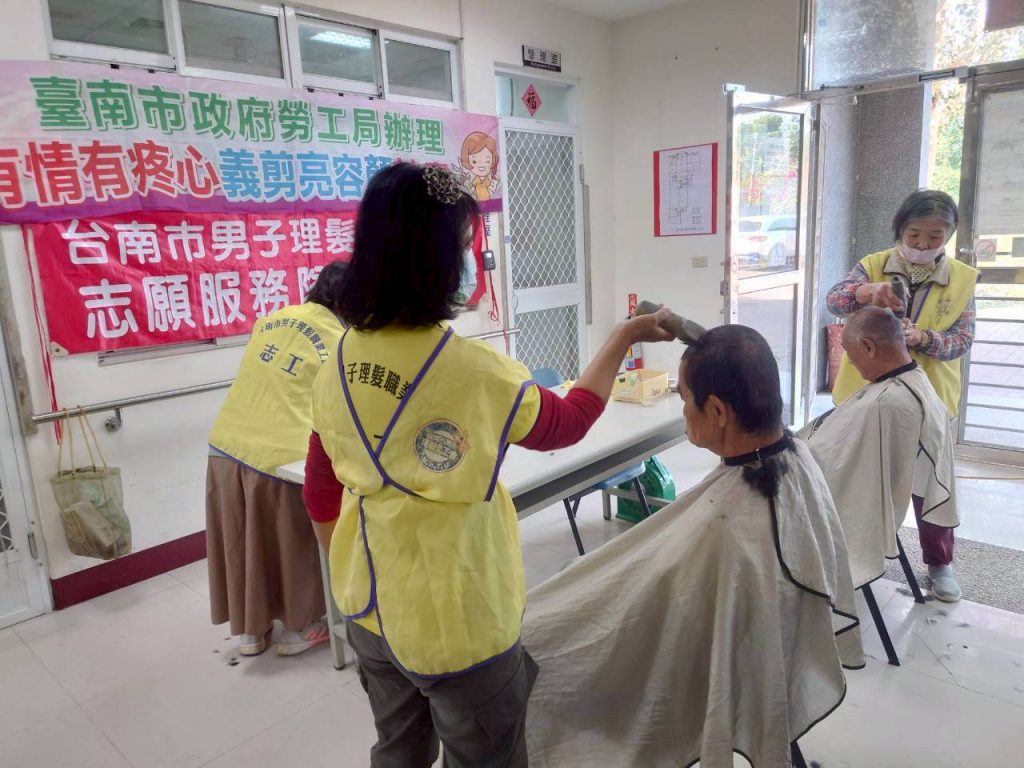 勞工局說,此次義剪由台南市男子理髮職業工會理事長陳杰雄,率領多位技術精湛理髮師參與,每位義剪志工細心為院生修整頭髮,展現專業技能與耐心。