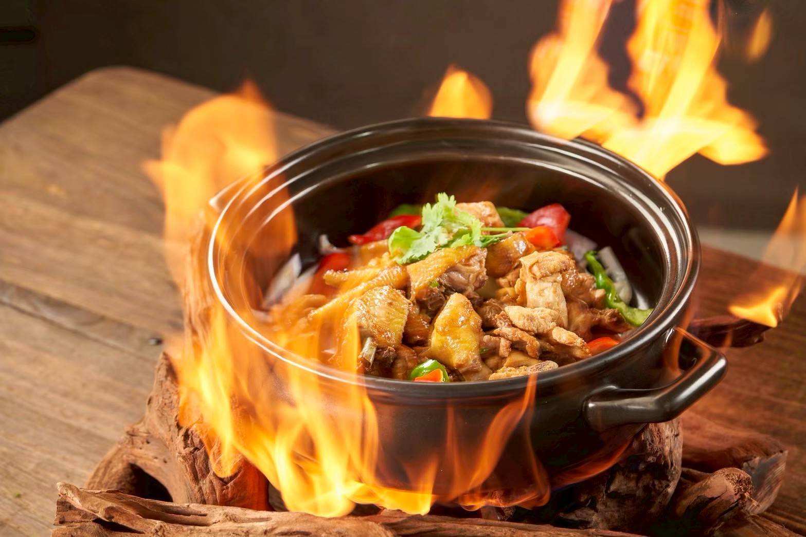 除了火鍋,烽味還推出「乾鍋雞煲」,以滾燙鐵鍋爆炒醃製入味的雞肉,鍋氣十足,香辣過癮;另有源自順德的「桑拿雞」,以藥材雞湯為底,上置蒸籠,用蒸氣瞬間蒸熟薄切雞片,肉質爽滑鮮嫩,吃完雞肉再喝凝聚精華的湯,清甜無比,展現食材本味。