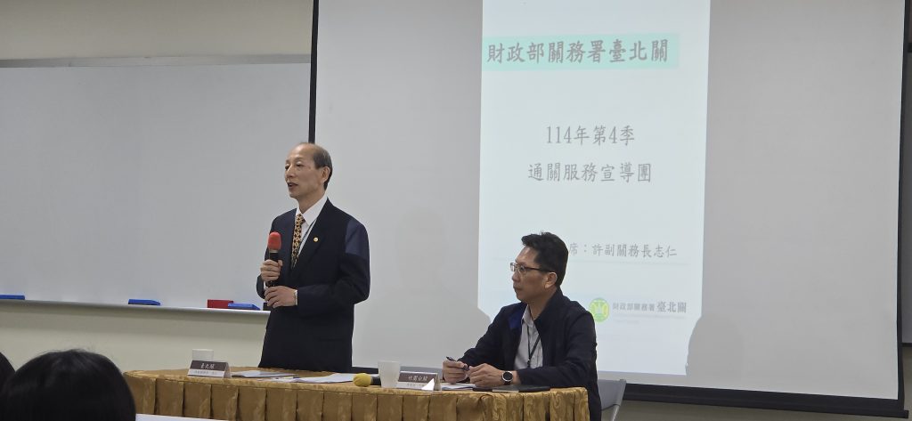 臺北關為宣導貨物通關應注意事項及新修正之進出口規定,於遠雄航空自由貿易港區公司會議室,舉辦「114年度第4季通關服務宣導團」宣導會,會議由該關副關務長許志仁主持,與會單位參與踴躍,現場討論反映熱烈,許副關務長並表達感謝業者及商民積極參與瞭解相關宣導議題,宣導會圓滿順利。