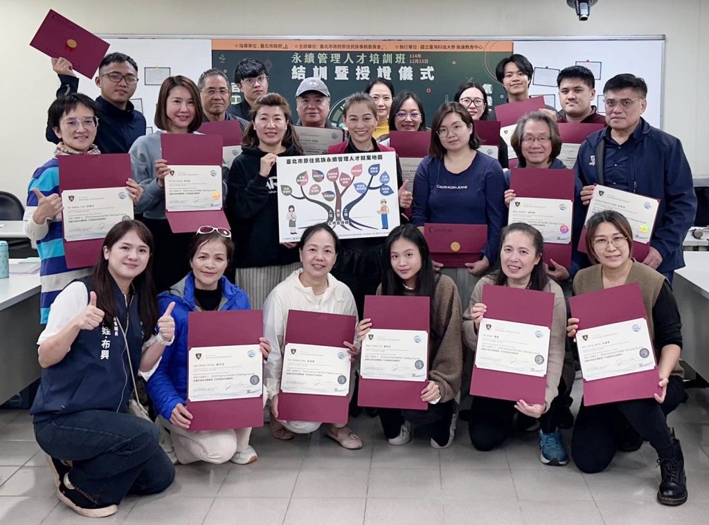 台北市原住民族事務委員會積極協助原民拓展職涯路徑,辦理「永續管理人才培訓班」,計有二十五位原住民族人受訓,培訓課程採「訓照合一」,原住民永續管理生力軍,即將為企業綠色轉型注入新活力。