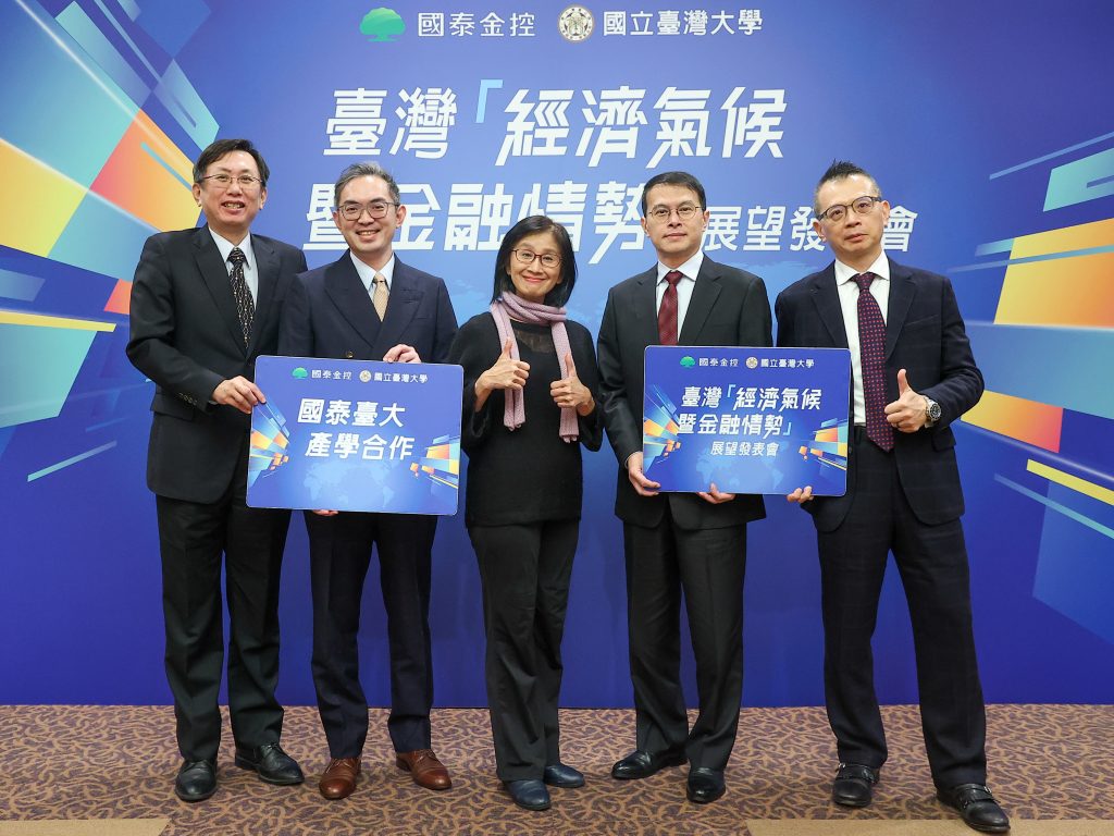 國泰金舉行第四季台灣經濟氣候暨金融情勢展望發表會,投資長程淑芬、國泰台大產學合作計畫主持人何耕宇、協同主持人徐之強皆出席。