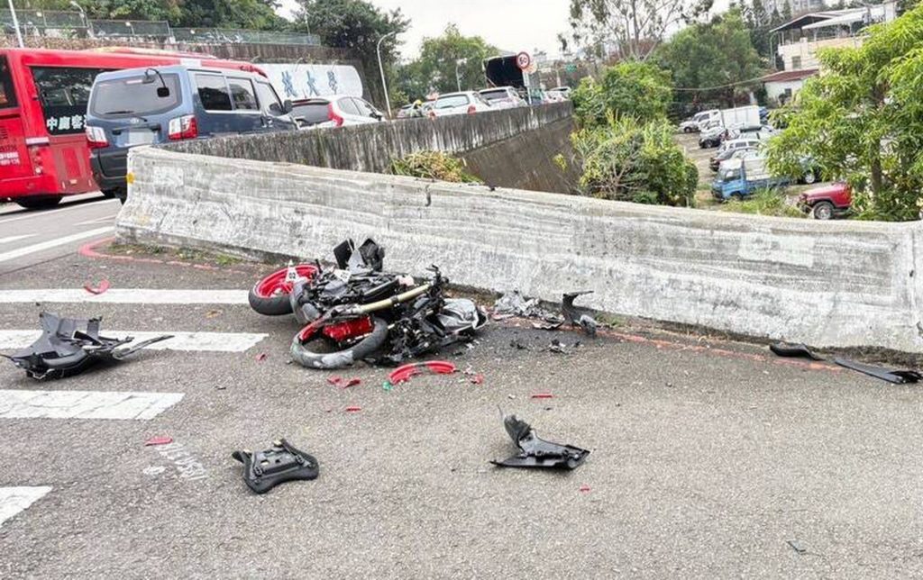 台中市二十歲劉姓男子十五日上午騎乘大型重機,行經北屯區廍子路和仁友巷交叉路口時,不明原因自撞路口護欄,摔落一層樓高橋下車殼碎裂,頭部撕裂傷,現場無生命跡象,雖救起送醫仍不治,詳細肇事原因將由鑑定單位進一步分析釐清。