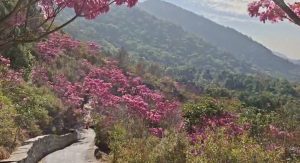而除了紫牡丹外,許鴻文也試種一、二十種的各種花樹,最後選種適地的花樹,所以除了紫牡丹染出了梅嶺的好容顏外,紅花風鈴木、杜鵑和山櫻花也都成了不同季節的主角,而十二月和一月盛開的紅花風鈴木正燦爛盛開著,讓梅嶺鬧著春意。許鴻文表示,西拉雅風管處也將梅峰古道重新修建好了,還有觀賞平台也重新打造,讓古道花海迎接新的一年到來。