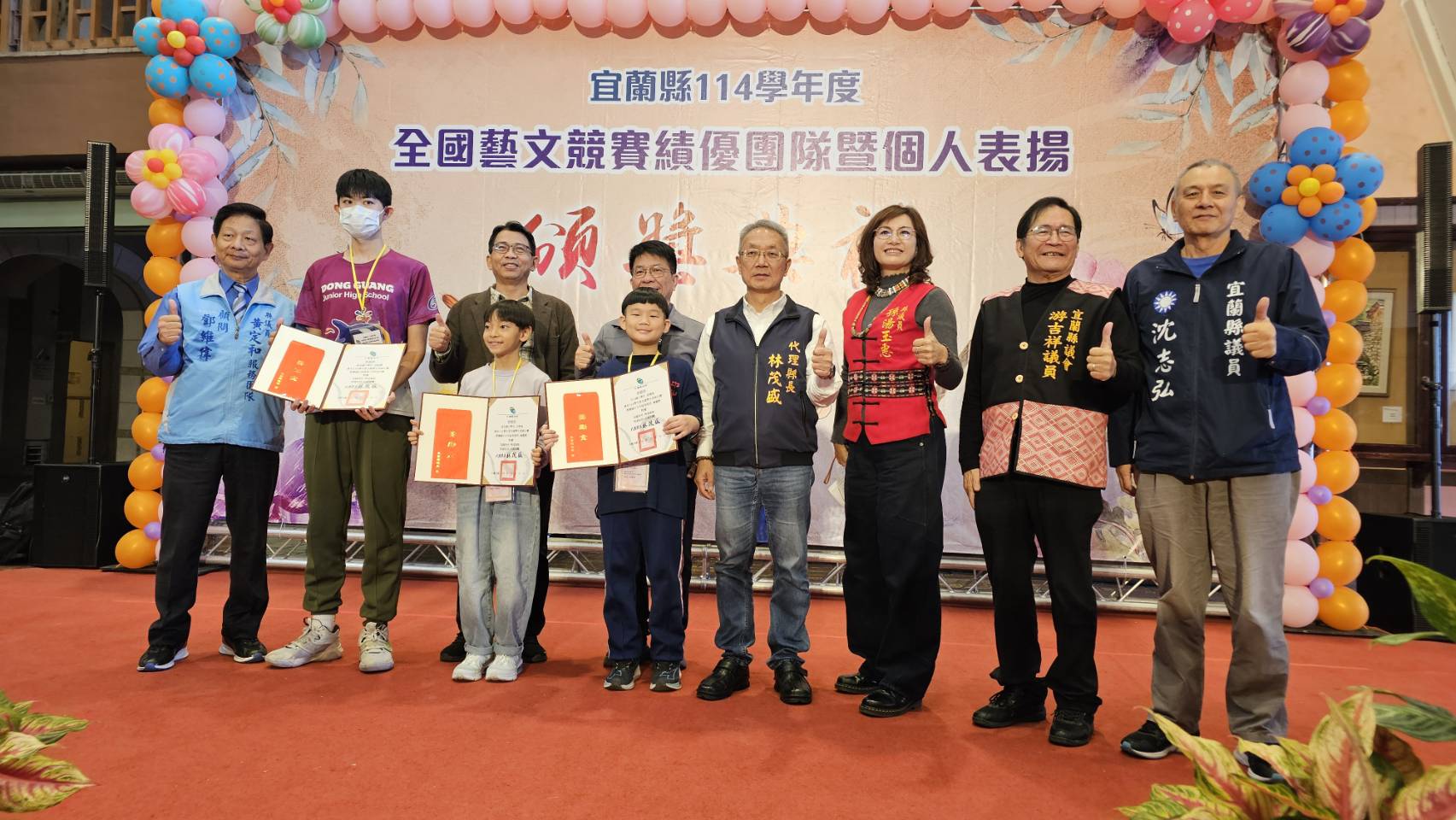 林茂盛代理縣長表示,語文與藝術教育是培養文化傳承與創造力的重要基石,縣府將持續打造多元學習環境,讓孩子適性發展、自信成長。他也感謝校長、教師、家長與學生的長期投入,並期許宜蘭學子未來在各項全國競賽中持續發光發熱,寫下更多榮耀篇章。
