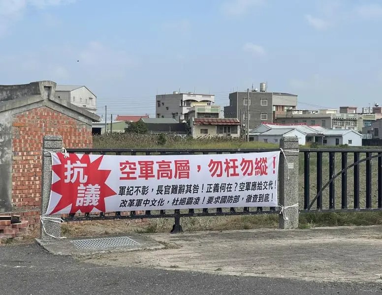 嘉義縣東石鄉近日在多處沿海道路、橋梁欄杆上,陸續出現多幅未署名的白布條,上頭寫「空軍軍紀不彰」、「長官難辭其咎」、「正義何在」、「改革軍中文化、杜絕霸凌」、「國防部徹查毋枉毋縱」等強烈字句,引發用路人與鄉民側目。軍方表示,相關案件經調查,未如指控霸凌或軍紀不彰問題,全案依人事法規辦理。