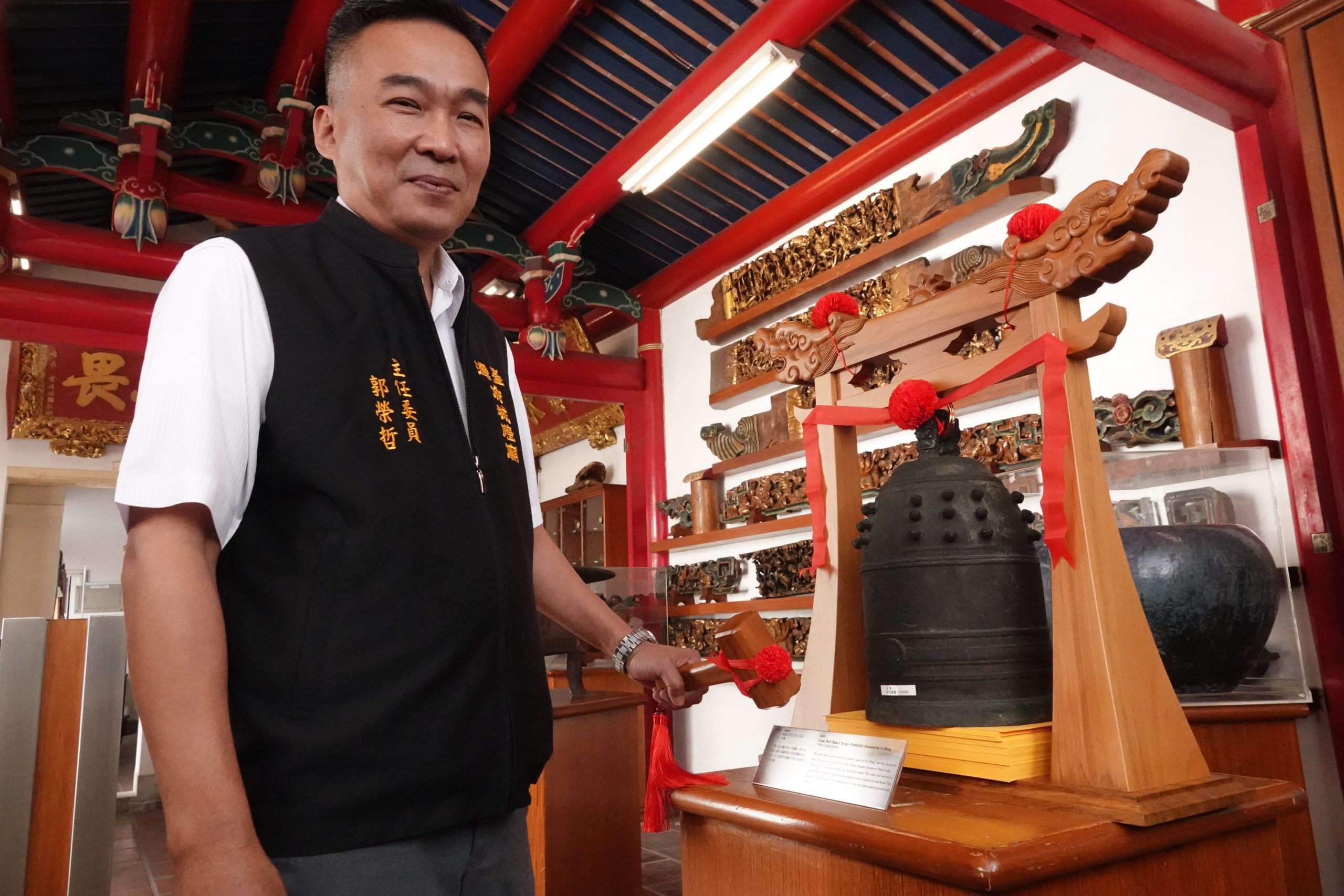 「二0二六台南跨年敲鐘祈福」活動,目前巳有約一百間宮廟報名參加,而活動記者會選定在台灣府城隍廟舉行,主委郭榮哲特從文物館中搬出這只珍藏的道光弁鐘供市長以及民眾敲鐘祈福,迎接一一五年元旦的到來。