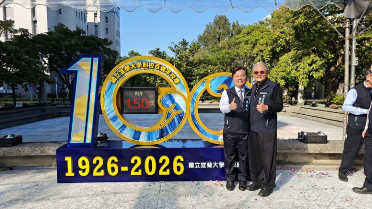 國立宜蘭大學十六日下午於校內隆重舉行「百年校慶倒數鐘揭牌儀式」,正式啟動邁向創校百週年的倒數時刻。活動在宜大勁舞社充滿青春活力的開場表演中揭開序幕,象徵宜大承先啟後、迎向未來的蓬勃能量。