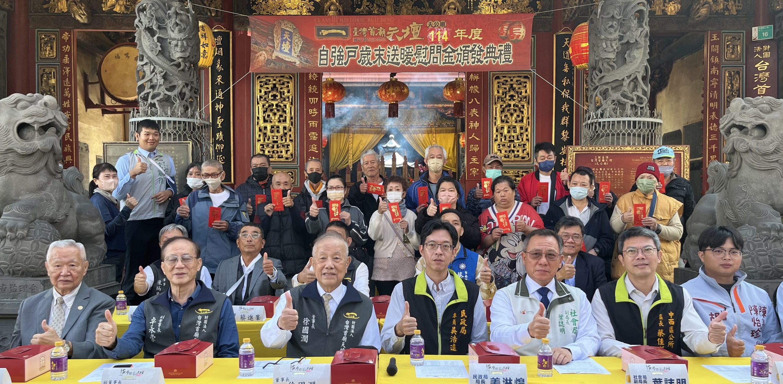 台灣首廟天壇(天公廟)頒發114年度自強戶歲末送暖慰問金。