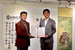 中華科大校長傅彥凱(右)頒贈感謝狀給郭慶璋理事長(兩岸影像藝術文創協會提供)