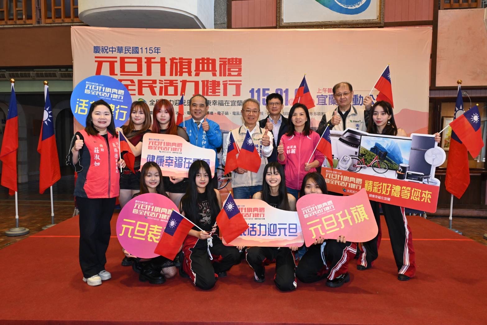 一一五年元旦升旗典禮將於一月一日上午六時三十分,在宜蘭運動公園田徑場舉行,除升旗典禮外,將安排宜蘭街頭藝術協會表演活力舞蹈及羅東高工棒球隊領唱國歌,讓活動更加生動活潑。升旗儀式後將進行健行活動,從宜蘭運動公園體育館前廣場出發,經縣府折返。縣府將準備二千五百面小國旗發送民眾。另外準備三千五百份活力早餐贈送全程參與健行活動的民眾(數量有限,送完為止),同時還有機會參加摸彩,獎項有電視、電冰箱、洗衣機、除濕機、電鍋及腳踏車等豐富獎品。