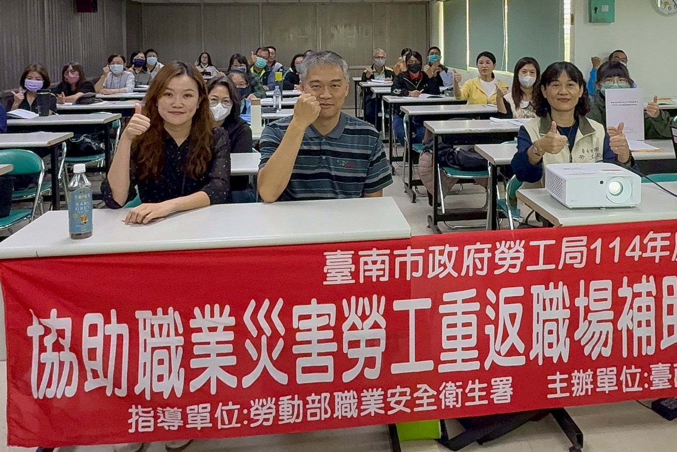 勞工局十七日於南門育樂中心舉辦一一四年度最後一場「職災勞工重返職場補助辦法說明會」,邀請企業與勞工參與,鼓勵勞資雙方善用政府補助資源,提升復工支持環境,實踐市長黃偉哲「希望家園」的施政願景。