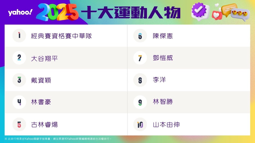 Yahoo公布2025年度「十大運動人物」排行榜。(Yahoo提供)