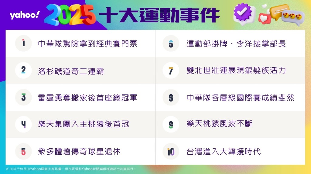 Yahoo公布2025年度「十大運動事件」排行榜。(Yahoo提供)