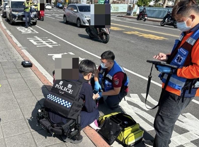 永康警化身老人「守護者」,一名陳姓老婦獨自騎著機車要前往奇美醫院就醫,卻在溪頂橋上突然感到一陣暈眩、手腳無力,支撐不住沉重的機車,連人帶車摔倒在橋面上,而當時正是交通繁忙時段,老婦孤身倒在路中,格外無助。還好永康分局的員警阮詠勝、許心褕正好處理完案件路過,他們沒有片刻遲疑,立刻將警車停在老婦後方,用閃爍的藍紅燈光擋住後方來車。