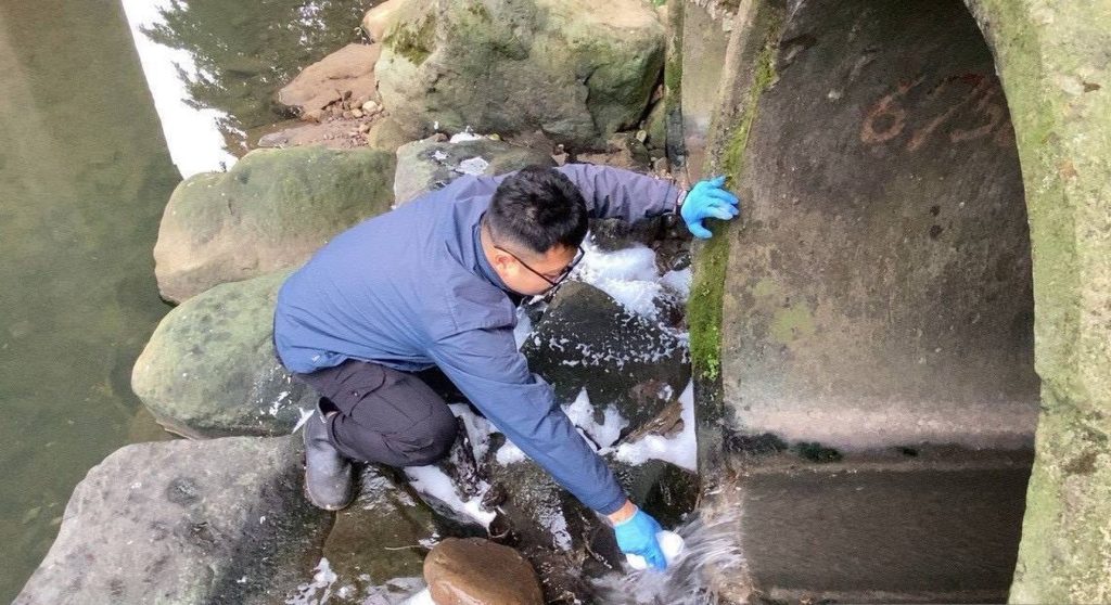 經環保局派員循線調查,並巡查社區消防設備、洗車業者等,尚未發現可疑行為人,目前僅發現暖暖衛生所前方有消防救災後所產生之白色泡沫,環保局已組成專案小組,現正沿線追查相關可疑汙染源。