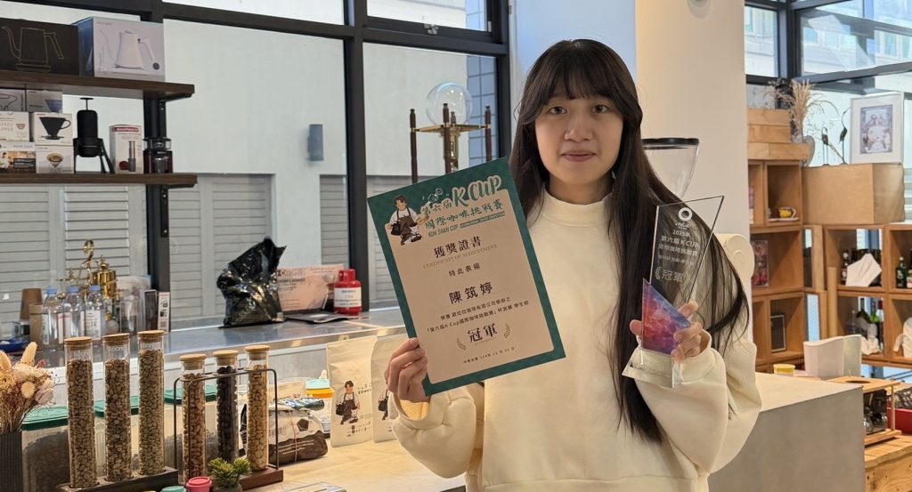 嘉南藥理大學食品科技系學生陳筑婷參加「2025年第六屆K Cup國際咖啡挑戰賽」,憑著精準的味覺與嗅覺,過關斬將,以全對「大滿貫」優異成績,勇奪杯測組冠軍,展現嘉藥食品系在感官科學教育上的卓越成果。