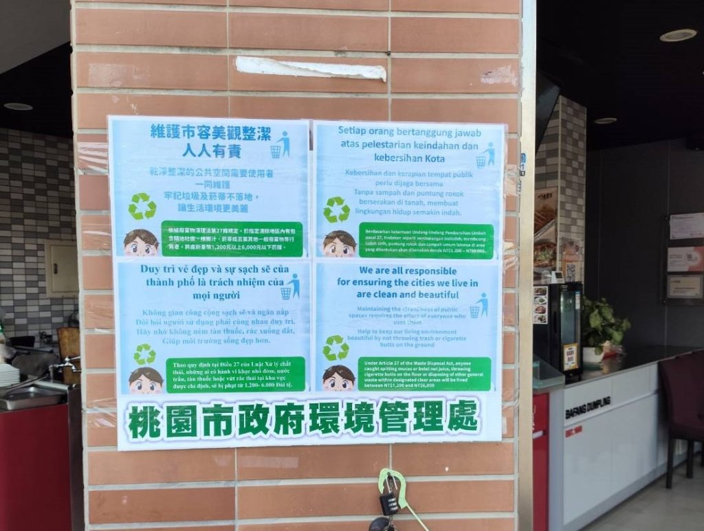 環保局指出,考量富岡車站周邊平時有大量外籍通勤者,環保局也與周邊餐飲商家合作,張貼中、英、印尼、越南等多國語言宣導標語,提醒旅客垃圾不落地與菸蒂正確丟棄規定,讓外籍旅客能更容易理解在地生活規範,強化富岡「國際友善、潔淨小鎮」形象。