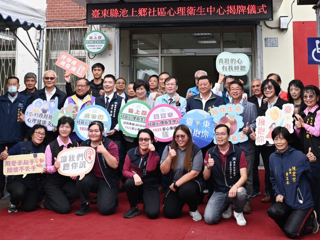 台東縣池上鄉社區心理衛生中心十九日揭牌啟用,這是繼台東市、成功鎮第三處社區型心理支持服務據點。縣長饒慶鈴表示,民眾若有壓力、情緒困擾或需要有人聊聊,可就近前往三處社區心理衛生中心,希望把心理健康真正融入每位民眾的日常生活。