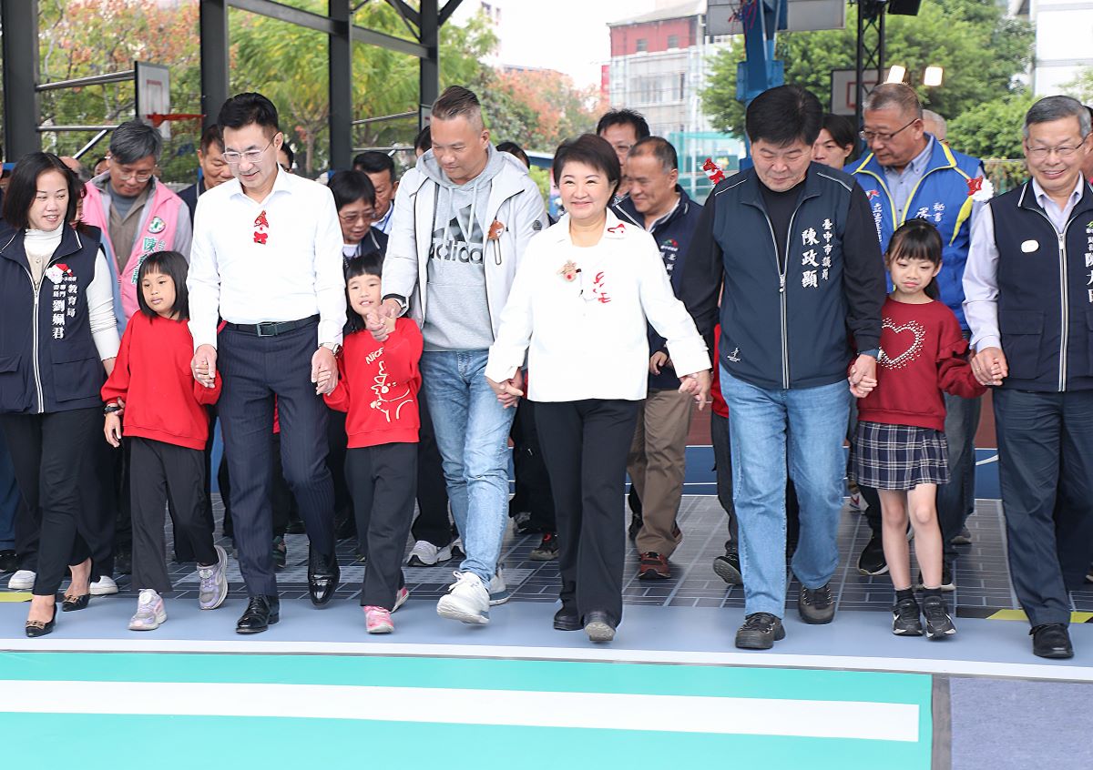 「今天不是市長的身分,是北區的女兒回家!」盧市長指出,北區人口比例及面積較廣,許多道路及建設日漸損毀老舊,因通學與通勤需求密集,市府將人行環境改善列為施政重點,持續推動道路燙平及人本交通建設,如過去花費近1億元整修忠明南路。這次工程除提升健行國小及忠明高中周邊通學安全外,也同步優化區域通行動線,特別感謝立法院副院長江啟臣、市議員陳政顯及陳文政大力支持,也感謝市府建設局團隊,北區建設不只開工,更順利完工。