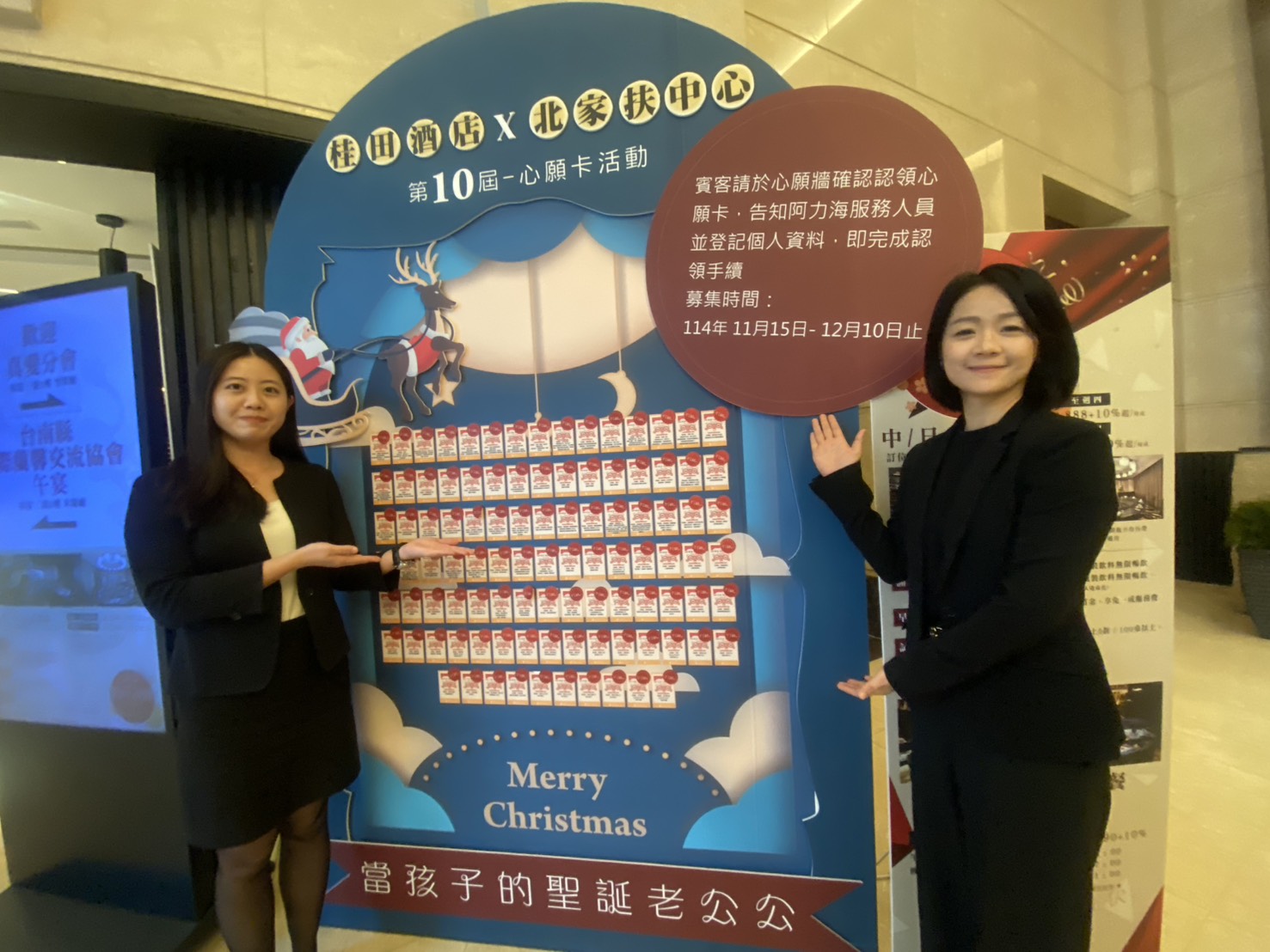 每到歲末,永康區桂田酒店都攜手北台南家扶中心,舉辦點亮心願卡活動,邀請旅人來當家扶孩子的聖誕老公公,圓孩子們的心願禮物,至今十年,已有上千孩子獲得心愛耶誕禮。