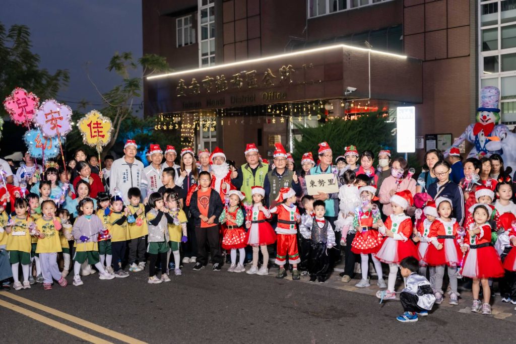 楠西區十九日的夜很耶誕,區公所以「楠西耶誕 暖心相伴」為主題,舉辦聖誕踩街活動,大小朋友一起手牽手踩大街,而區公所大樓、永興吊橋更同步點亮彩燈,為耶誕增添喜慶的氣氛,也為山城迎春揭開序幕。