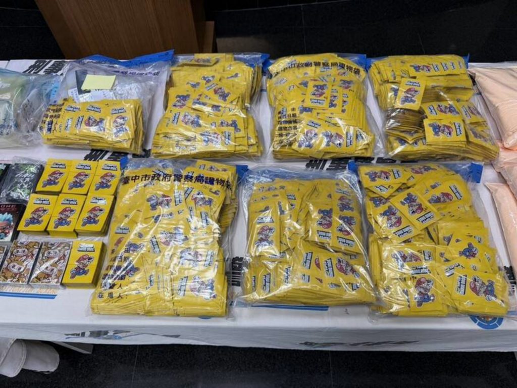 今年六月十一日清晨警方持搜索票上門查緝,趁他出門準備載小孩上學時,在樓梯間將他攔下,隨後進入屋內當場查獲馬力歐包裝毒咖啡一千四百四十八包、半成品咖啡包三百零三包,以及卡西酮原料、封膜機、磅秤、攪拌器等大量製毒與分裝器具,另起出K他命等毒品,初估市值逾百萬元。