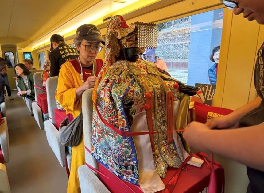 嘉義縣新港奉天宮媽祖神旅行,十九日自嘉義市啟程,海神媽祖神尊在北門車站登上阿里山林鐵「栩悅號」,展開為期四天從海到山的信仰之旅。