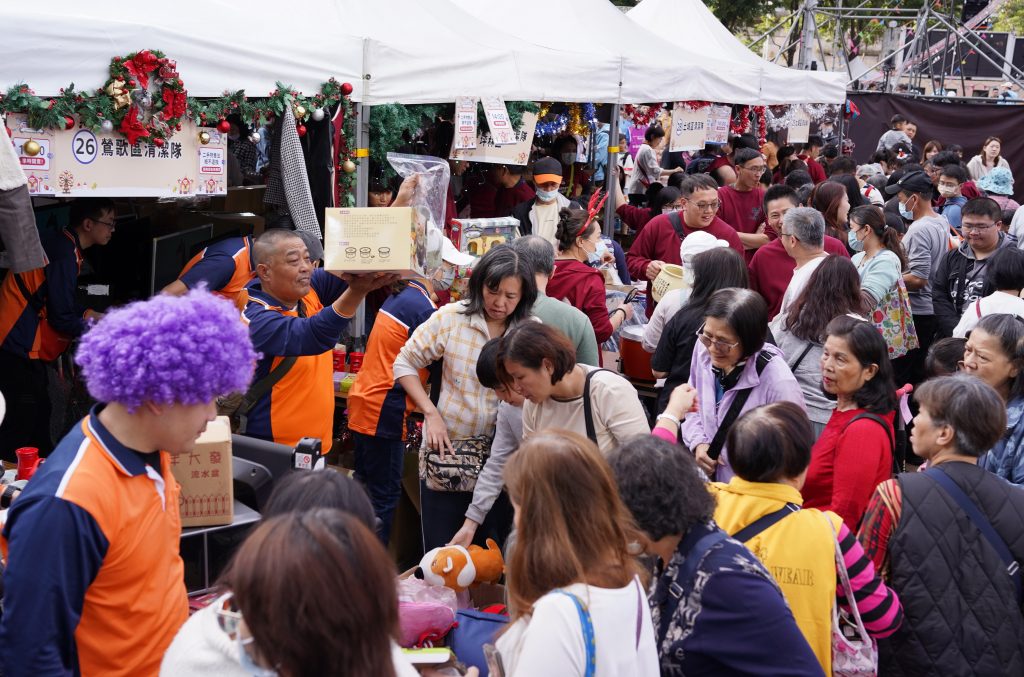 「二0二五新北耶誕環保挖寶趣─舊FUN新玩‧拾憶好物同樂會」二十日在市民廣場歡樂耶誕城登場,現場設置四十八個義賣攤位,吸引逾萬人參與,義賣全數將納入「新北市好日子愛心大平台」。
