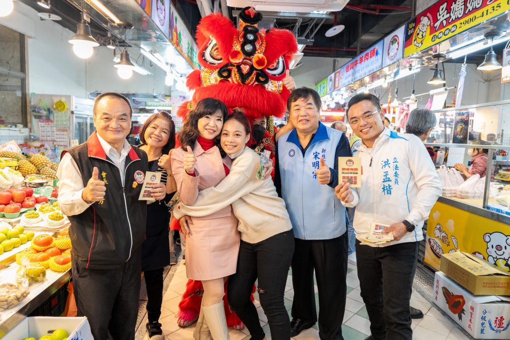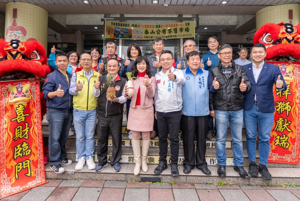 新北市泰山、五股區重要的民生採買中心泰山公有零售市場,經兩個月的休市進行優化工程及空調系統全面更新完成,二十日上午重新開市。經發局長盛筱蓉出席開市儀式後,走訪市場各攤位發放發財金,祝福每名攤商生意興隆、財源廣進,現場氣氛熱烈。