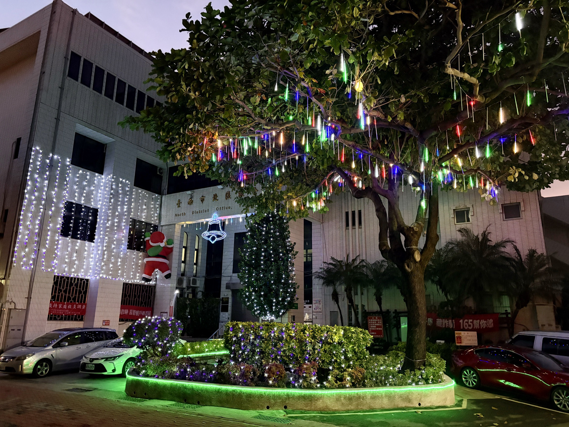 北區區公所辦公大樓現址從民國七十幾年迄今已有四十餘年歷史,新的行政大樓將於明年春節完工,公所即將遷移,區長潘寶淑二十日特別舉辦北區公所最後一個耶誕節點燈儀式向舊廳舍告別,也為北區增添一處絢爛的耶誕美景。