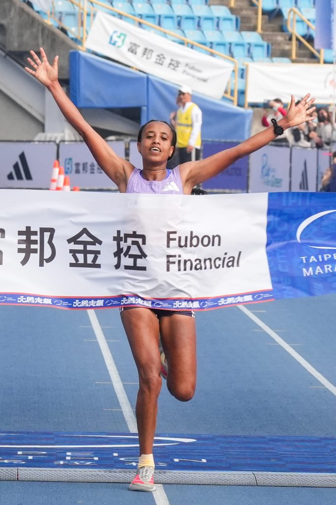 來自衣索比亞的狄米西(Gadise Mulu Demissie),從起跑後就保持穩定步伐,過了10公里後就逐步拉開和其他女子選手差距,最終以2小時24分17秒率先衝線,並且打破2022年的場地紀錄2小時25分55秒。