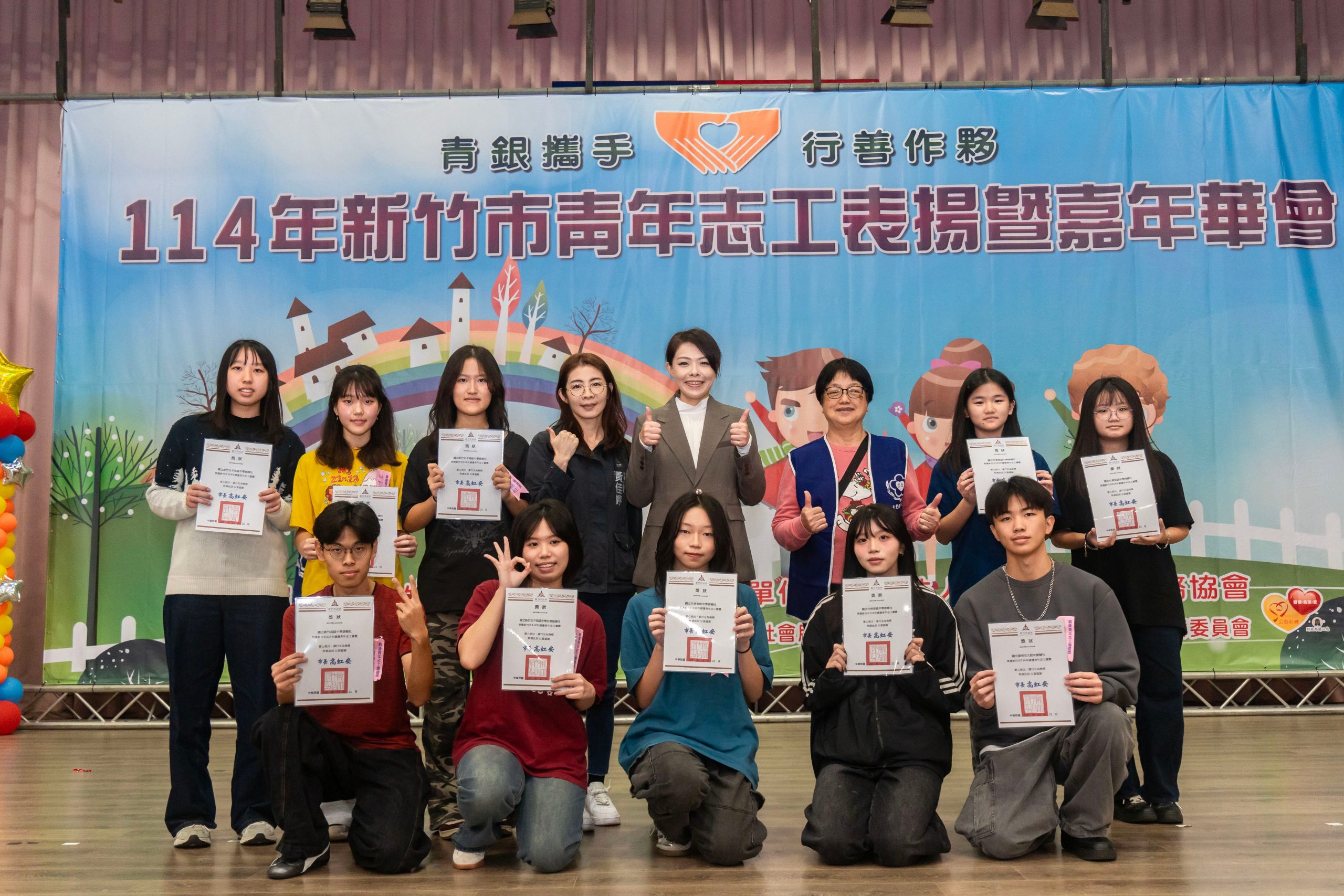 高虹安說,今年活動規模再創新高,共表揚五十七位優秀青年志工及三十六隊績優青年志工團隊。其中,「國立新竹女中春暉社」已連續二十二年投入弱勢兒童免費課輔服務,學姊及學妹們以「用生命影響生命」的理念,透過溫馨課輔陪伴,串起小老師與孩子之間深厚的情誼,宛如一列溫暖的課輔列車,陪伴孩子探索屬於自己的小宇宙。此外,「新竹市香山高中春暉社」在今年九月花蓮縣光復鄉堰塞湖潰堤災後,同學們於指導老師葉羽秦帶領下化身「鏟子超人」,前往光復鄉協助清淤救災,展現青年即時行動力與台灣社會互助精神,成為竹市青年志工的最佳典範。
