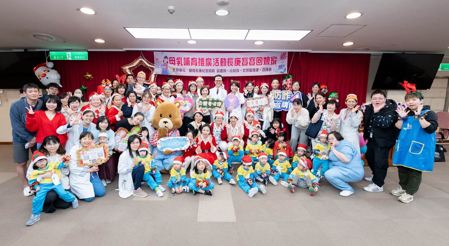 基隆長庚紀念醫院耶誕節前夕舉辦「2025母乳哺育推廣活動─長庚寶寶回娘家」,邀請歷年在院內誕生的長庚寶寶與家屬同聚一堂。活動由副院長詹益聖領軍,婦產科主任黃詩穎以及多位院內主管出席,以耶誕裝扮與親子同樂,展現對母嬰健康推廣與婦幼安全的高度重視。
