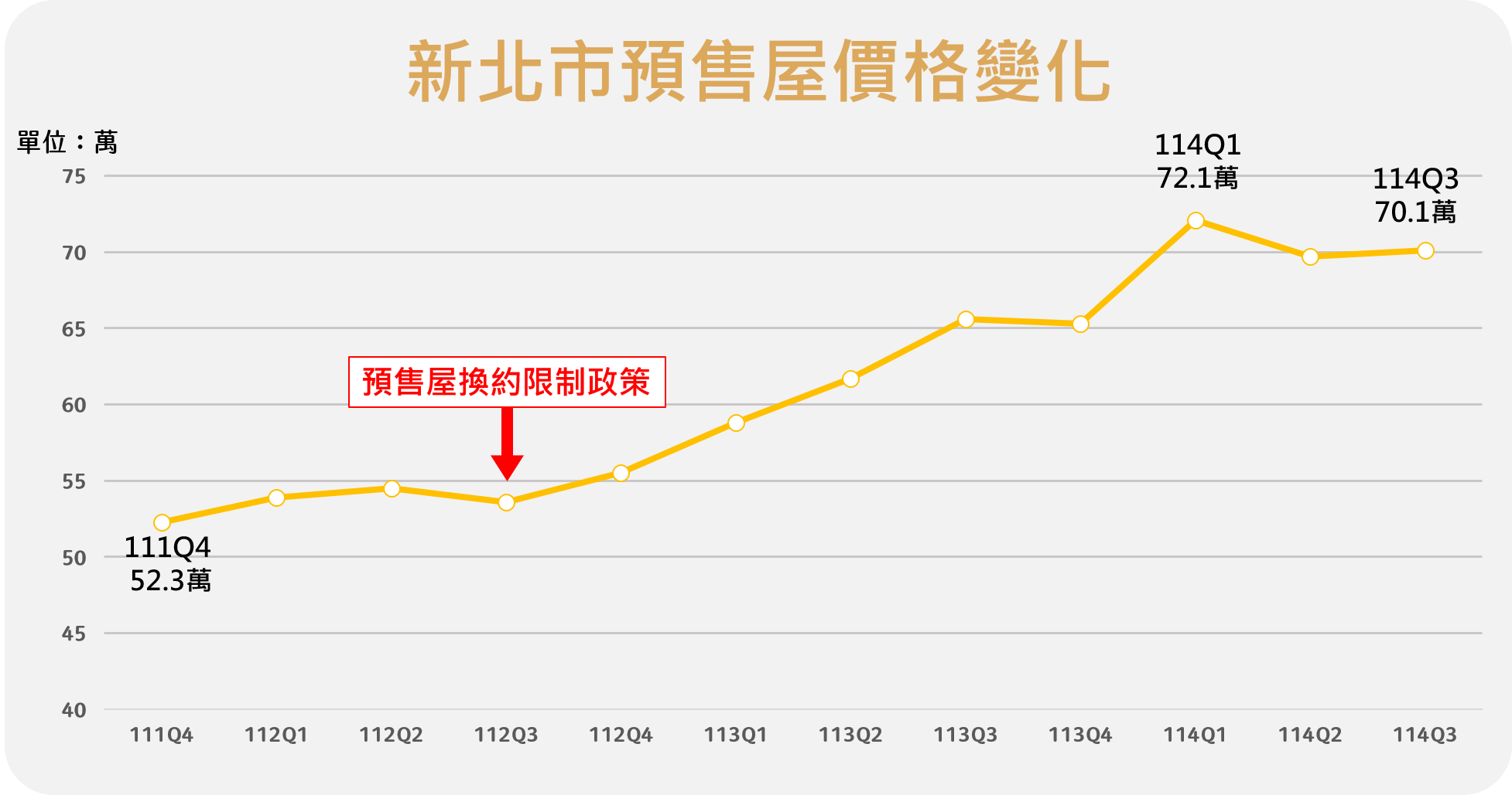 新北市地政局地價科科長蕭湘君表示,114年Q3房市受到中央銀行持續維持「選擇性信用管制」的政策基調影響,市場呈現明顯「價漲量縮」格局,市場表現亦出現結構性分化,呈現「預售強、成屋弱」的趨勢。儘管行政院已排除「新青安」貸款額度限制,對首購族申貸有所助益,但整體去化速度仍趨緩,投資性購屋動能持續受壓,市場預估將維持「量縮盤整」格局,買方觀望氣氛仍濃,此外中古屋的委託成交比下滑至 7.32%,反映議價空間有擴大趨勢,市場話語權逐步轉向買方。