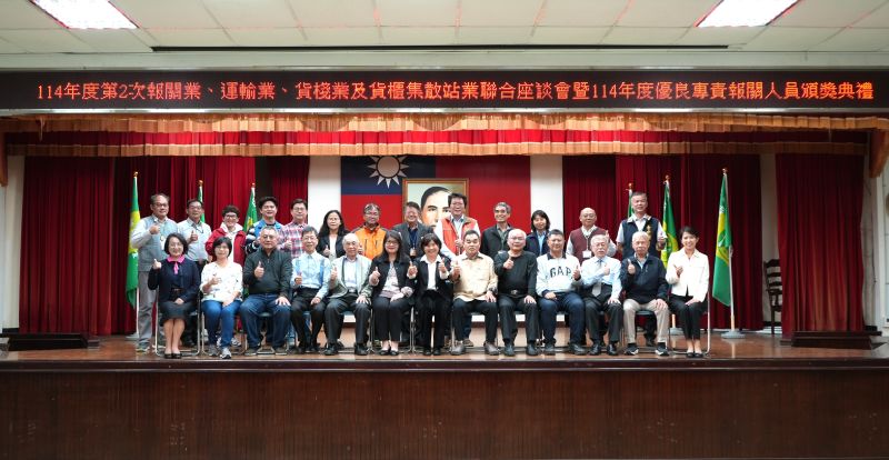 臺中關為強化與通關業者之溝通交流,提升通關效能與服務品質,舉辦114年第2次報關業、運輸業、貨棧業及貨櫃集散站業聯合座談會暨114年度優良專責報關人員頒獎典禮,由關務長張淑娟頒發獎狀,公開表揚優良專責報關人員。座談會由副關務長陳玉景主持,邀請報關業、運輸業、貨棧業及貨櫃集散站業共同與會。該關各業務單位主管就近期通關業務、政策推動及業界關切議題進行雙向溝通及交換意見,深獲業界肯定。