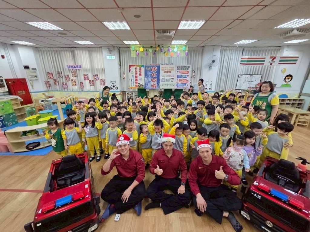 迴龍分隊長洪正諺表示,此次活動與南華幼兒園孩童一同歡慶聖誕,透過寓教於樂的方式,使幼童願意分享喜悅也能引起家長重視,從小建立正確的防災觀念,提升對於災害應變的認知,未來將持續深入學校、社區,讓防災教育從小紮根,普及至每個家庭。