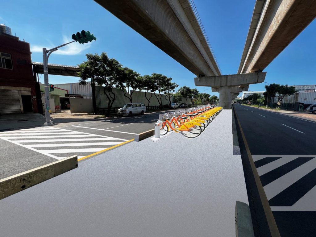 捷工局利用捷運施工落墩後變寬的中央分隔島,把人行道上的電力、電信等管線箱體移進去,並於分隔島規劃自行車停車空間,除了將既有人行道鋪面改善,並規劃無障礙坡道、公車避車彎、增加機車停車彎,另外捷運車站已透過退縮腹地整體規劃,擴大行人通行空間,並與既有人行道銜接。為因應115年底優先通車路段,市府啟動整合相關單位,延續周邊人行道改善、公車及YouBike等轉乘設施,以提升民眾通行安全與捷運轉乘便利性。