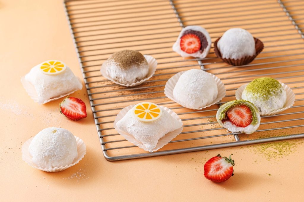 貓茶町大福系列顆顆擁有新鮮糯米磨製而成的Q彈軟糯外皮,「大福系列」有七大口味。(圖/貓茶町提供)
